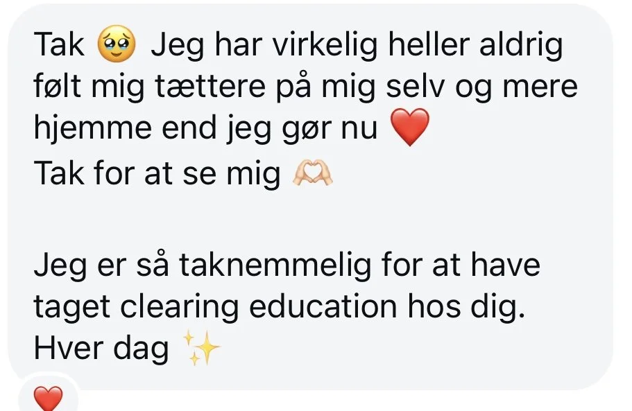 Det er derfor jeg har udviklet Clearing-teknikken™ - fordi jeg vil lære dig hvor simpelt og naturligt energiarbejde egentlig er, og at vores mod til at ære vores essens altid avler Abundance, frihed og flow.